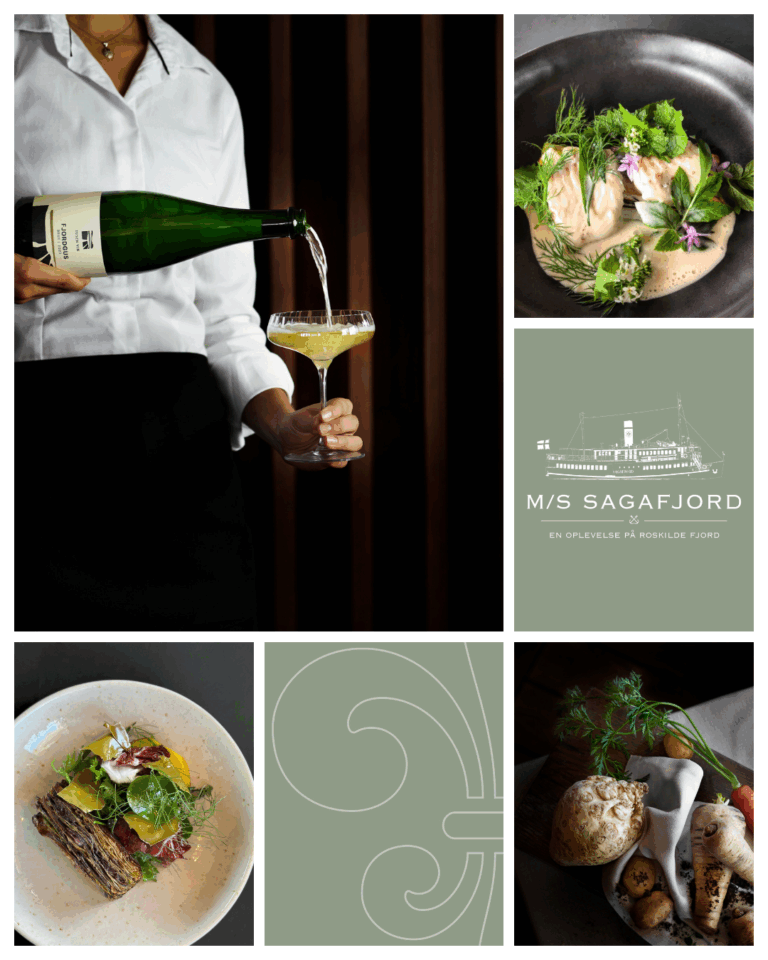 Vi starter den smukke sejlads med et lifligt glas mousserende dansk vin og hjemmelavede snacks som serveres i de flot opdækkede saloner.